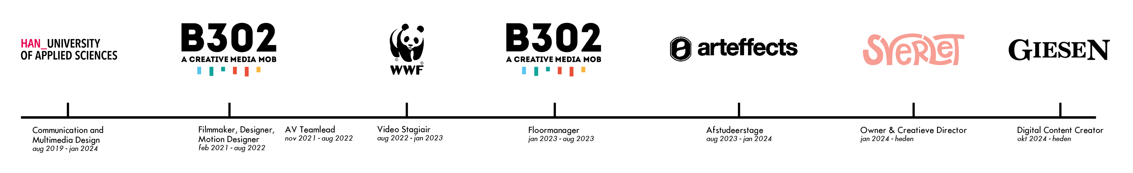 Mijn ervaring bestaat uit werken in mijn studietijd bij B302, als (Motion) Designer en filmmaker. En later doorgegroeid tot teamlead van het AV Team en Floormanager. Verder heb ik veel ervaring opgedaan bij het WWF in het filmteam en bij filmbureau Arteffects.