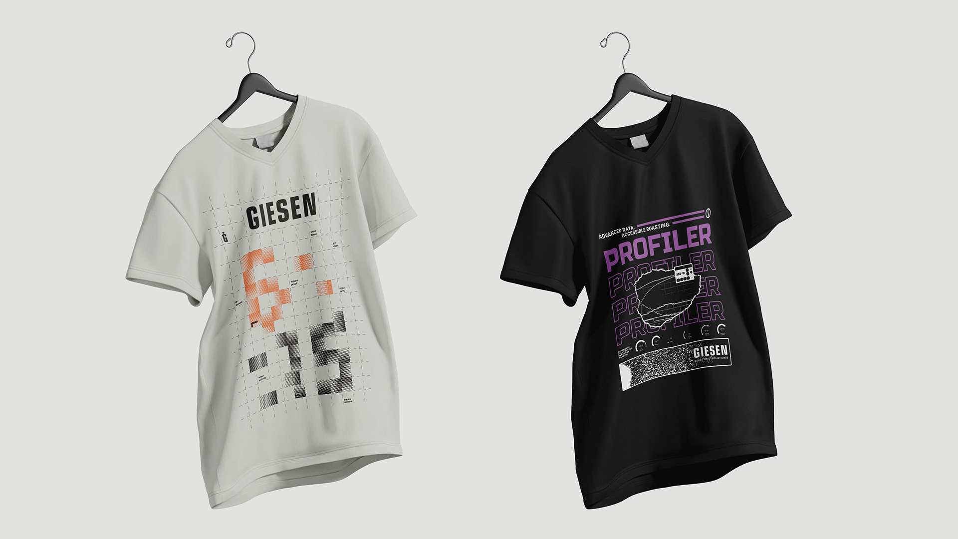 Ter promotie van de nieuwe roasters heb ik twee shirts ontworpen. Één die de promotie van de roaster centraal zet, met de herkenbare elementen van de campagne. En één ter promotie van de roastsoftware 'Profiler'. Met de contrastrijke look en feel wordt er veel uitgelicht en is er ruimte gelaten voor diversiteit tussen de ontwerpen.