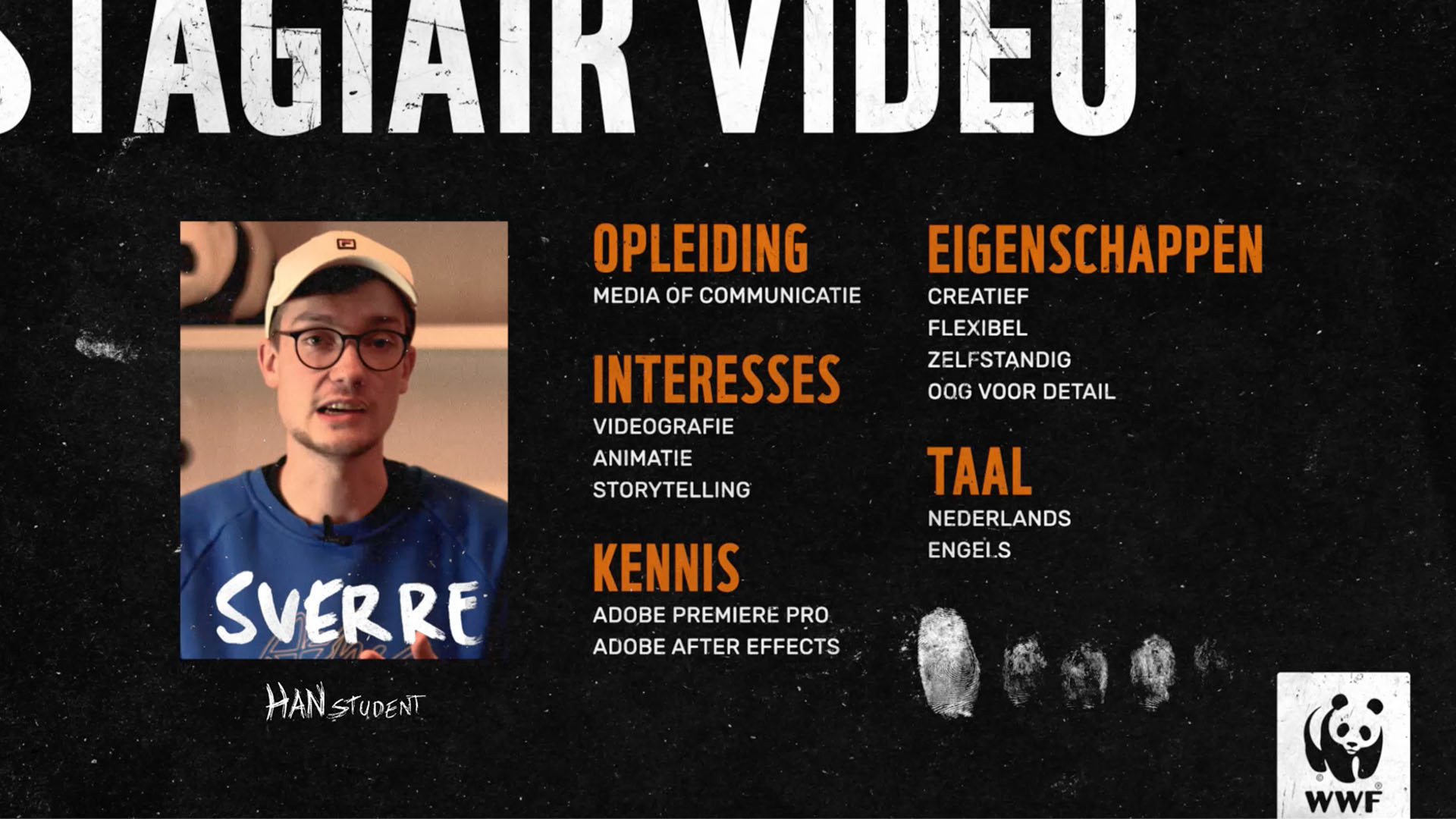 Voor mijn stage bij het WWF werd er gevraagd aan mij, de video-stagiair, om een video te maken om nieuwe stagiairs voor deze functie te werven.